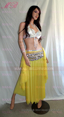 Falda Bellydance Triple Capa - 12 metros Gasa Chiffon color Amarillo.