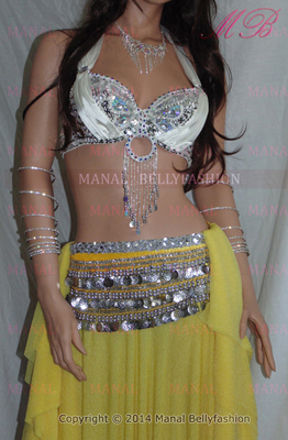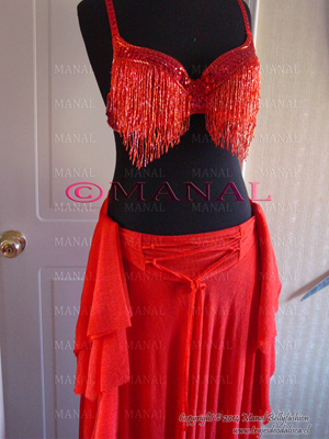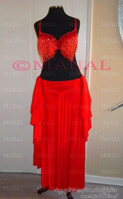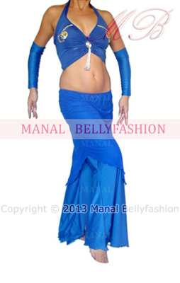Traje, Pantalón con sobrefalda, Brasier con aplicaciones