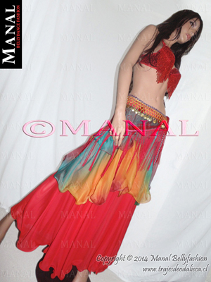 Falda Triple Capa Desigual - 12 metros Gasa Chiffon Roja y Batik