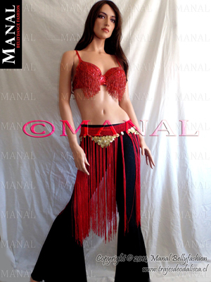 Caderín Egipcio Bordado 4 Franjas de flecos en Mostacillas,