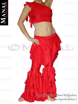 Pantalón Vuelos /Top una manga vuelo. Acetato/Faldita |