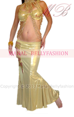 Traje Lycra Batik Brillante escarchada en dorado. Incluye Falda