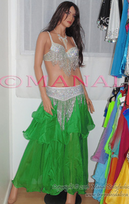 Falda Triple Capa Desigual Gasa Chiffon Verde. |