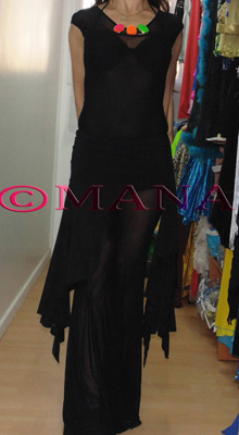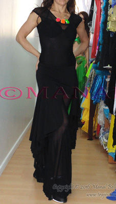Traje Gala en Malla Negro. Pantalón con sobrefalda y Brasier.