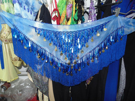 Caderín Azul Batik Tejido con Monedas, Flecos de Seda y Lentejuelas